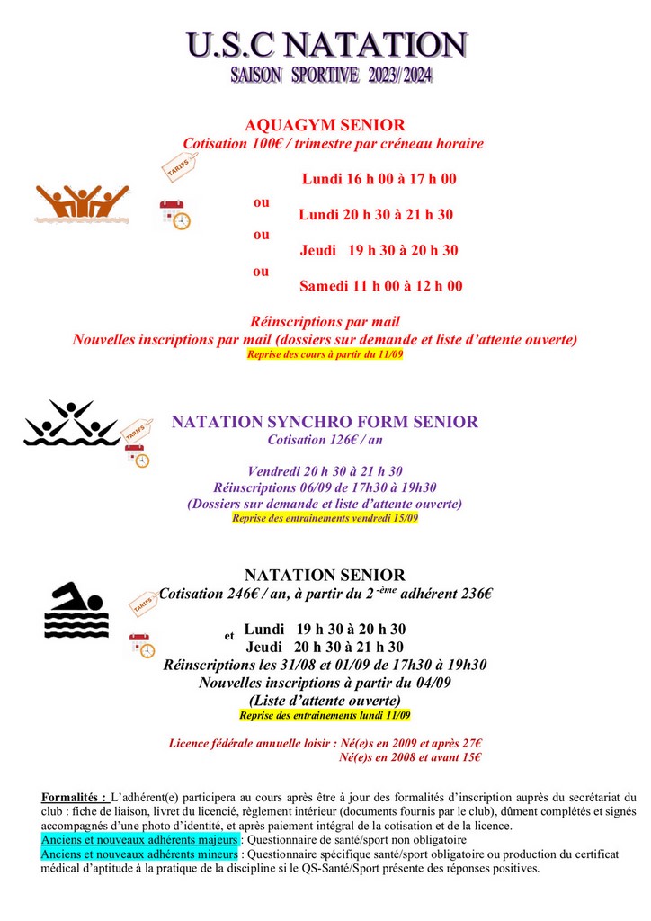 c. Adresser un mail à l’adresse suivante usc.natation@wanadoo.fr
